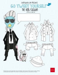 Hello, there is a contest that it could be fun (copy and paste the link) http://everyguyed.com/lookbook/go-tweet-yourself/