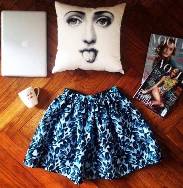 Foto: gonna Giuliette Brown, cuscino Fornaseti, MackBook Apple, Vogue Brasil + Vogue British, tazza Wait and See
